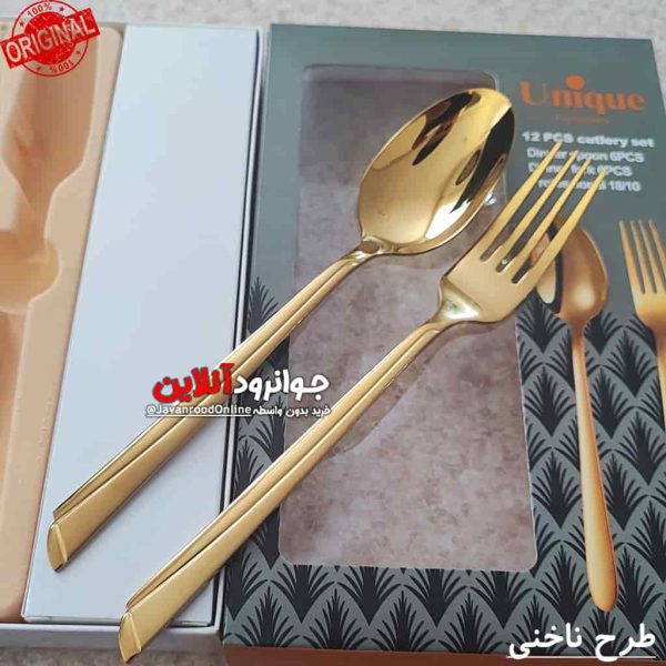 قاشق چنگال طلایی یونیک طرح ناخنی بستـه 12 عددی،