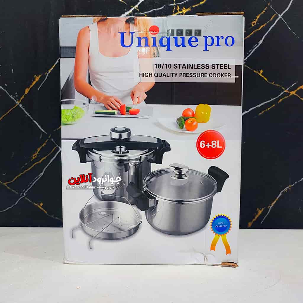 مدرن ترین و زیبا ترین زودپز در بین محصولات شرکت یونیک unique germany بدون شک این مدل است. از نظر اطمینان کارکرد این محصول جزو سریع ترین و مطمین ترین زودپزها میباشد. محصولی که تمامی استانداردهای اروپا را دارا میباشد و این راحتی را برای شما فراهم میاورد. شما میتوانید زودپز روگازی یونیک پرو دوقلو 6+8 را با قیمتی مناسب از جوانرود آنلاین تهیه نمایید.