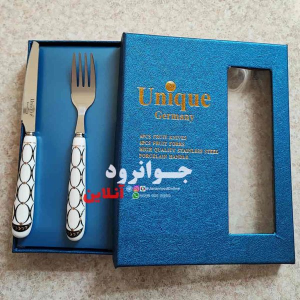کارد و چنگال میوه خوری یونیک طرح سرامیکی در یک شکل زیبا و به صورت چند گوشه از سرامیک تولید گردیده. دیزاین زیبای دستهها علاوه بر چشم نواز بودن برای مصرف کننده. موجب اسـتفاده سهل و آسان آن در میوه خوری نیز میشود مزیت این مدل این است. که به گونه ای طراحی گردیده که هم سبک و هم قدرت بیشتری به میزان برش سریع و بدون دردسر میوه میدهد